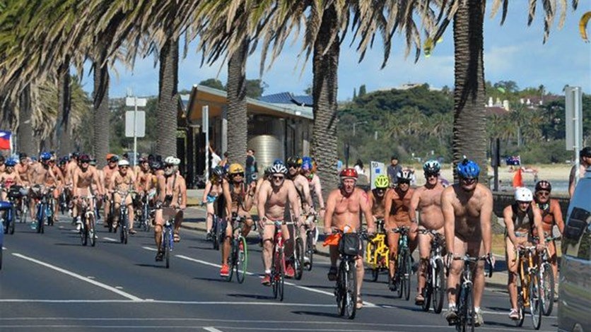 شوارع ملبورن تكتظ بعراة على الدراجات الهوائيّة