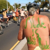 واكتظت الشوارع بأكثر من 200 رجل وامرأة تخلوا عن ملابسهم لجولةٍ عاريّة على الدراجة الناريّة. وكتب بعضهم رسائل على أجسادهم عن أهميّة المشاكل البيئيّة، التعري والحماية أثناء ركوب الدراجات الناريّة في حين سخر البعض الآخر من نفسه.
