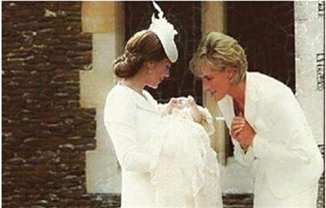 انتشرت عبر مواقع التواصل الاجتماعي صورة للأميرة ديانا تنظر الى الطفلة الاميرة شارلوت ابنة الامير ويليام بخشوع.