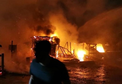 بالصور: حريق كبير في غرف للنازحين في سعدنايل