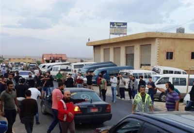 سائقو الفانات يقطعون الطريق في خلدة وبعلبك