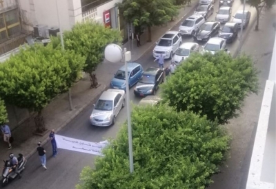 ووضع المعتصمون على سياراتهم ملصقات كتب عليها من الأمام "تحرك لأجل لبنان" ومن الخلف "ما خصك وين بصف".