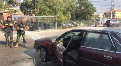 عناصر من الدفاع المدني أخمدوا حريقاً شب في احدى السيارات داخل المعاينة الميكانيكية في زحلة.