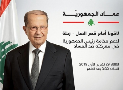 يتداعى مناصري و محبي الرئيس العماد ميشال عون الى وقفة امام قصر عدل زحلة عند الثالثة و النضف من بعد ظهر غد دعماً لفخامته في معركته ضد الفساد و هدر المال العام و استغلال السلطة .