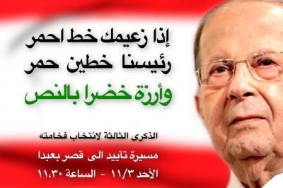 في ظل المواقف التي اطلقها الرئيس ميشال عون الداعمة لوقف الفساد و محاسبة المرتكبين و استعجاله لاقرار القوانين التي تعيد المال المنهوب و انسجاماً مع موقف المطارنة الموارنة بدعوة السياسيين اللبنانيين للالتفاف حول رئيس الجمهورية للاسراع في اتخاذ التدابير الدستورية لحماية لبنان ، تداعى محبو و مناصرو الرئيس الى مسيرة تأييد لفخامته الى قصر بعبدا يوم الاحد القادم عند الحادية عشرة و النصف قبل الظهر لمناسبة الذكرى الثالثة لانتخابه .