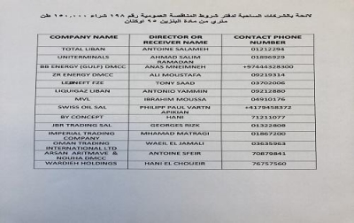 لائحة أسماء الشركات التي سحبت دفتر شروط مناقصة البنزين