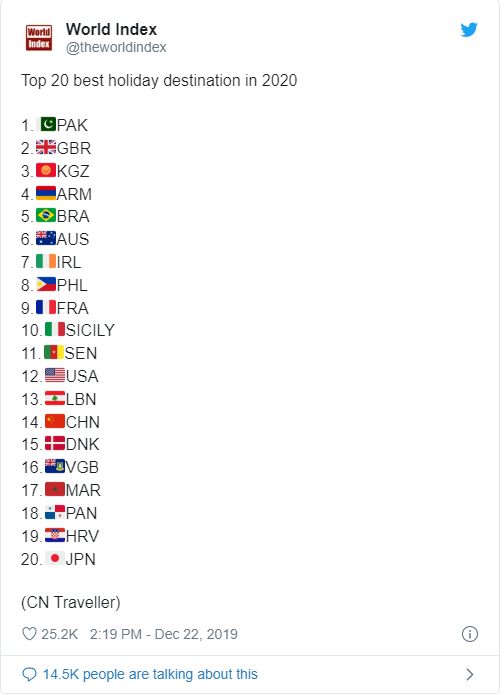 إحتل لبنان المرتبة الـ13 في قائمة ضمّت 20 دولة صُنِّفت كأفضل الوجهات لتمضية عطلة الأعياد في 2020، بحسب World Index.