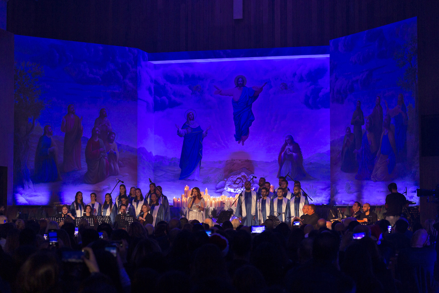وبعدها شدى صوت كارول سماحة الملائكي بعدد من الترانيم الميلادية وهي “المجد لك أيها المسيح”، White Christmas، “ليلة الميلاد”، “ها شعبك”، “ضوي بليالي سعيدة”، Dans Cette Etable التي أطلقتها العام المنصرم على طريقة الديو مع ألسندرو سفينا وشاركها فيها أمس التينور اللبناني الشهير بشارة مفرج، Silent Night وترنيمة “لما تتعجبين” التي لم تتمالك نفسها أثناء أدائها فاستسلمت لدموعها فرحًا وتأثرًا بالميلاد فبكى معها الجميع في لحظات مؤثرة وصادقة.