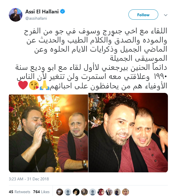 ووقام جورج وسوف بالرد على تلك الكلمات حيث نشر صورا ً اخرى من لقائه مع عاصي الحلاني و علق :" عندما نلتقي في عمان بنهاية العلم .. احلى لقاء في عمان قبل نهاية السنة".