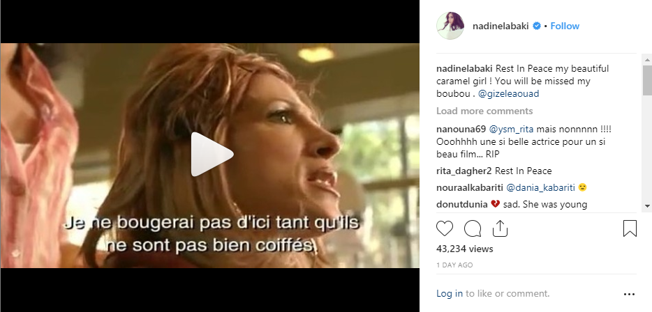 نعت المخرجة نادين لبكي الممثلة اللبنانية جيزيل عواد، التي توفيت في الساعات الأخيرة.