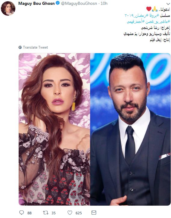 أعلنت الممثلة ماغي بوغصن خوضها السباق الرمضاني لعام 2019 من خلال مسلسل "بروفا"، ويشاركها في البطولة الفنان المصري أحمد فهمي.