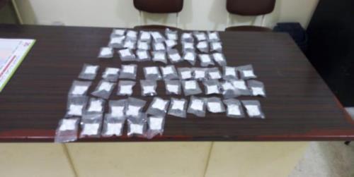وضبطت القوى الأمنية في داخل الكيس/60/ عبوة من مادة الكوكايين وباز الكوكايين، وتبيّن انه مطلوب للقضاء بموجب مذكرة توقيف بجرم تعاطي وترويج وإتجار بالمخدرات, وبالتحقيق معه، اعترف بأنه يروّج المخدرات لصالح سائق السيّارة الفار، ويدعى: _ ع. د.