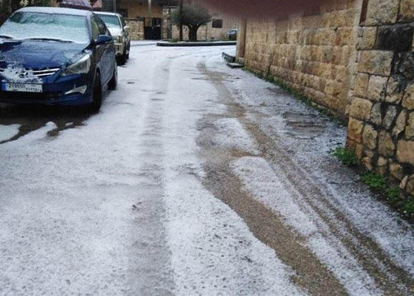 وفي الجومة عكار، اشتدت العاصفة منذ الليل، فهطلت الأمطار بغزارة مصحوبة بموجات كثيفة من البرد الذي غطى الطرقات واعاق حركة السير، كما تدنت درجات الحرارة الى ما دون الأربع درجات على ارتفاع 500 متر واقفلت المدارس ابوابها.