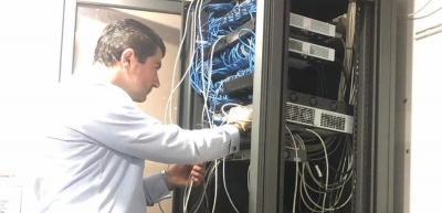 وقيل للمواطن إنّ المهندس لحود ليس في مكتبه وما عليه سوى الإنتظار فهو في جولة على المكاتب وسيستقبله فور عودته بدون حرج أو موعد مسبق. ولما طال به الأمر بدأ المواطن جولته لتعقّب لحود إلى أن شاهده واقفاً على أدراج السلّم معايناً وموجهاً الأعمال الجارية في الـ"Server room" من أجل مدّ شبكة الإتصالات والإنترنت في المؤسّسة تعزيزاً للخطة الجاري تنفيذها لمكننتها وربطها بالمصارف اللبنانية تسهيلاً لتبادل المعلومات.