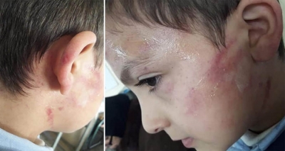 الطفل «هادي» وصل الى مدرسته مضروباً بوحشية من قبل والده وحالته يرثى لها!!