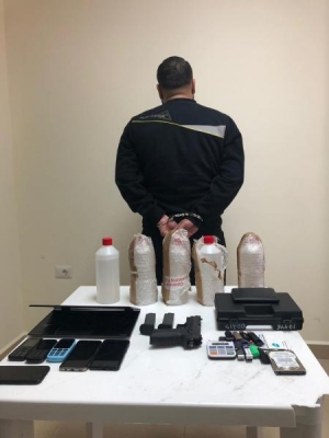 وعملت على توقيفه في مدينة صور على متن سيارة نوع "مرسيدس"، وعثر بحوزته على كمية من هذه المواد ومسدس حربي.