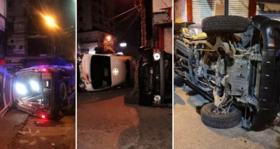 حادث مروع بين سيارة للصليب الاحمر تنقل مريضا ودورية درك يؤدي لمقتل المريض وجرح خمسة عناصر من الطرفين