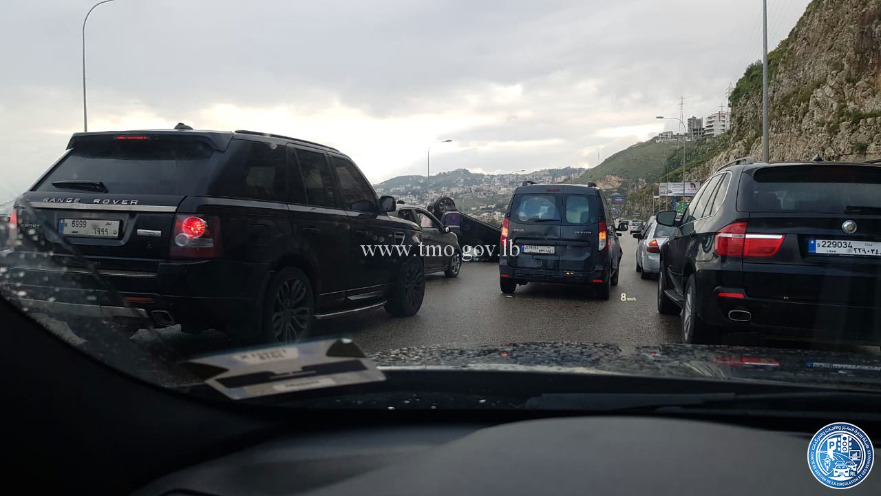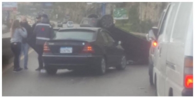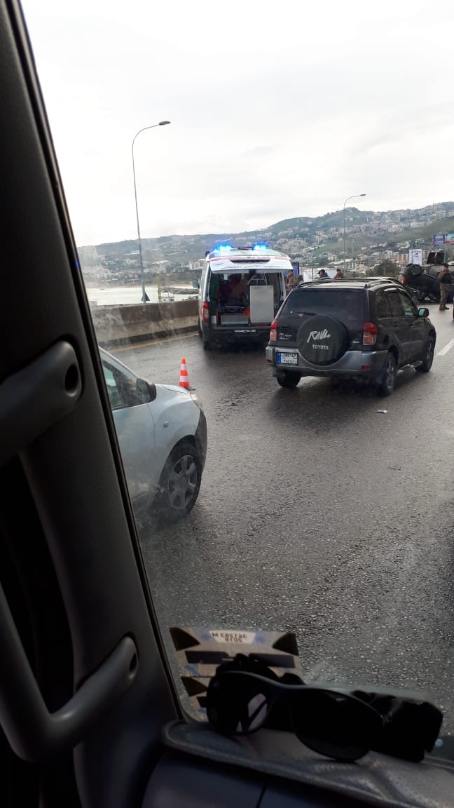 جريح في حادث سير ادى لانقلاب سيارة على اوتوستراد الجية