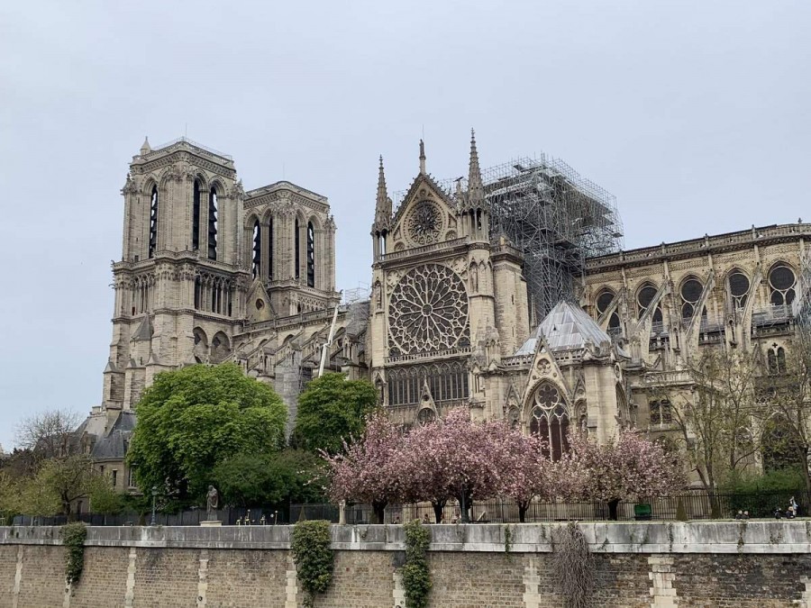 وكان أعلن الرئيس الفرنسي إيمانويل ماكرون أنّ "الأسوأ تم تجنّبه" في الحريق الضخم وأدّى إلى انهيار برجها وسقفها، واعداً بإعادة بناء المعلم التاريخي الذي سبّب احتراقه صدمة وحزناً في العالم أجمع.