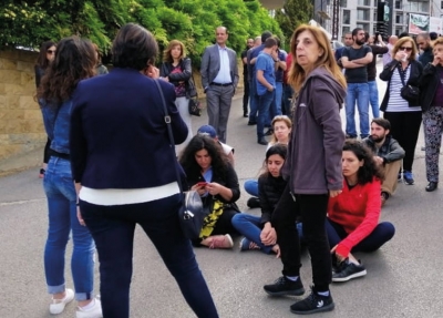 وافترش المعتصمون الأرض قاطعين الطريق من جهة والقوى الأمنية من الجهة المقابلة في وقت تقوم الفرق الفنية بأعمالها.